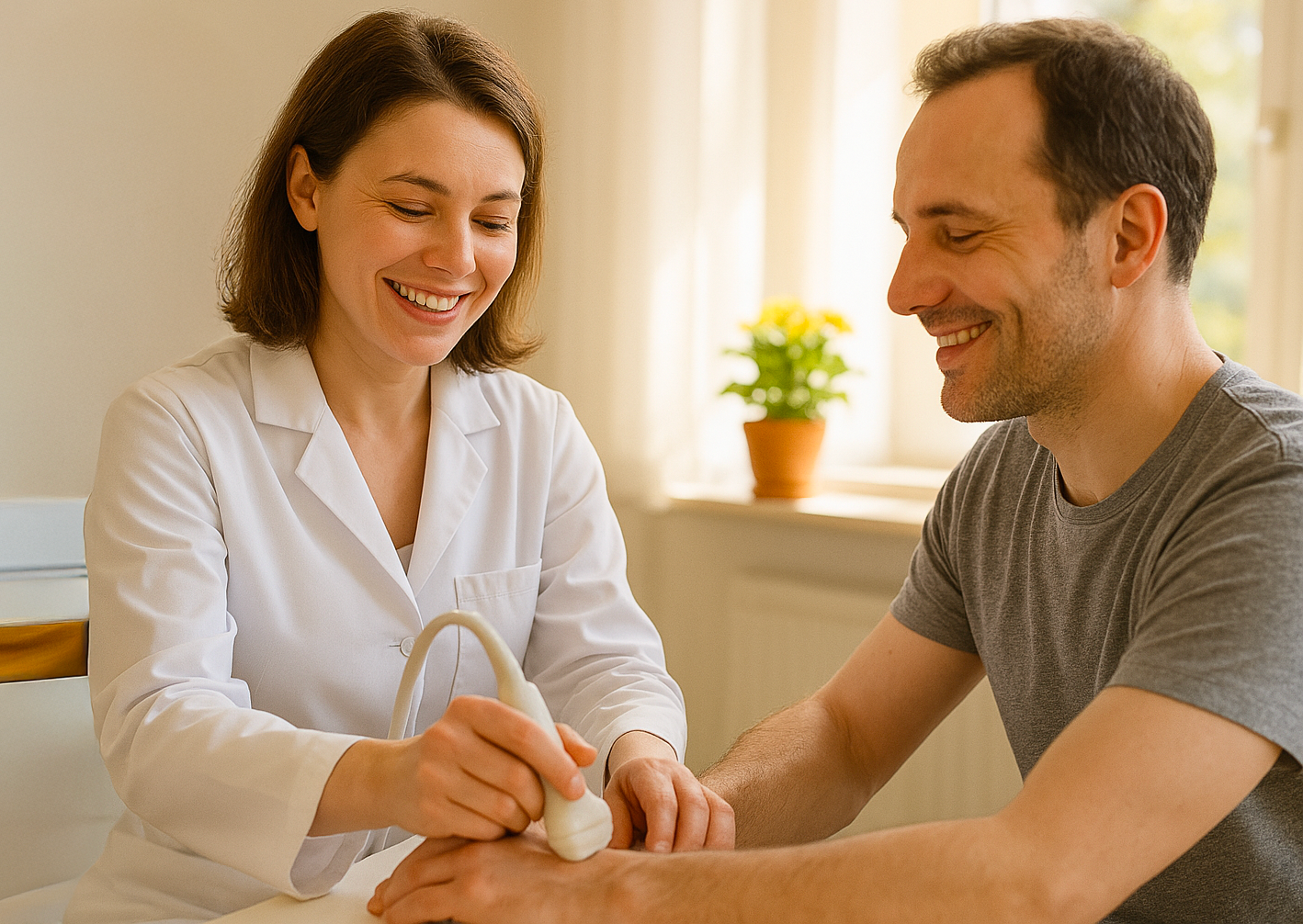 Vyšetření je nebolestivé, snadno proveditelné a trvá přibližně 15-30 minut. Kontraindikace prakticky neexistují. Před sonografií pacienta vyšetříme krátce klinicky a zeptáme se na anamnézu. Sonografické vyšetření navrhuje ošetřující lékař – většinou neurolog, praktický lékař, ortoped.
